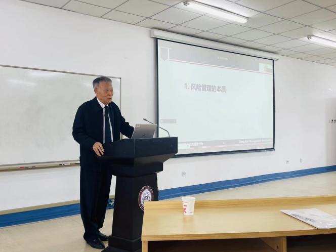 金教授的讲座主要从风险管理的本质、对中医药领域风险管理的认识和关于中医药领域风险管理的思考三个方面展开。第一部分从党中央的文件和部署引入,讲解了风险管理的基础理论,强调要辩证认识风险管理的本质,辨析了风险管理与常规管理的方法,使大家对所学专业有了更为深刻的认识。第二部分金教授表示自己通过准备本次讲座,发觉中医药科学具有风向管理天赋特征,提出“深刻认识中医药科学与风险管理的关系,继承发扬中医药科学中的风险管理思想,运用唯物辩证思维方法、增强防范化解风险本领,大力推进现代科技与中医药科学结合,依法从业、增强中医药行业法律风险免疫力”五点思考。